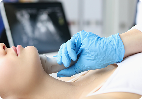 갑상선 질환을 평가할 때 초음파 검사는 가장 기본이자 핵심적인 검사입니다. 방사선 노출 없이 갑상선의 형태, 결절 및 염증 유무, 혈류의 흐름까지 세밀하게 확인할 수 있으며 갑상선 질환의 진단에 있어 가장 신뢰도가 높은 검사입니다.