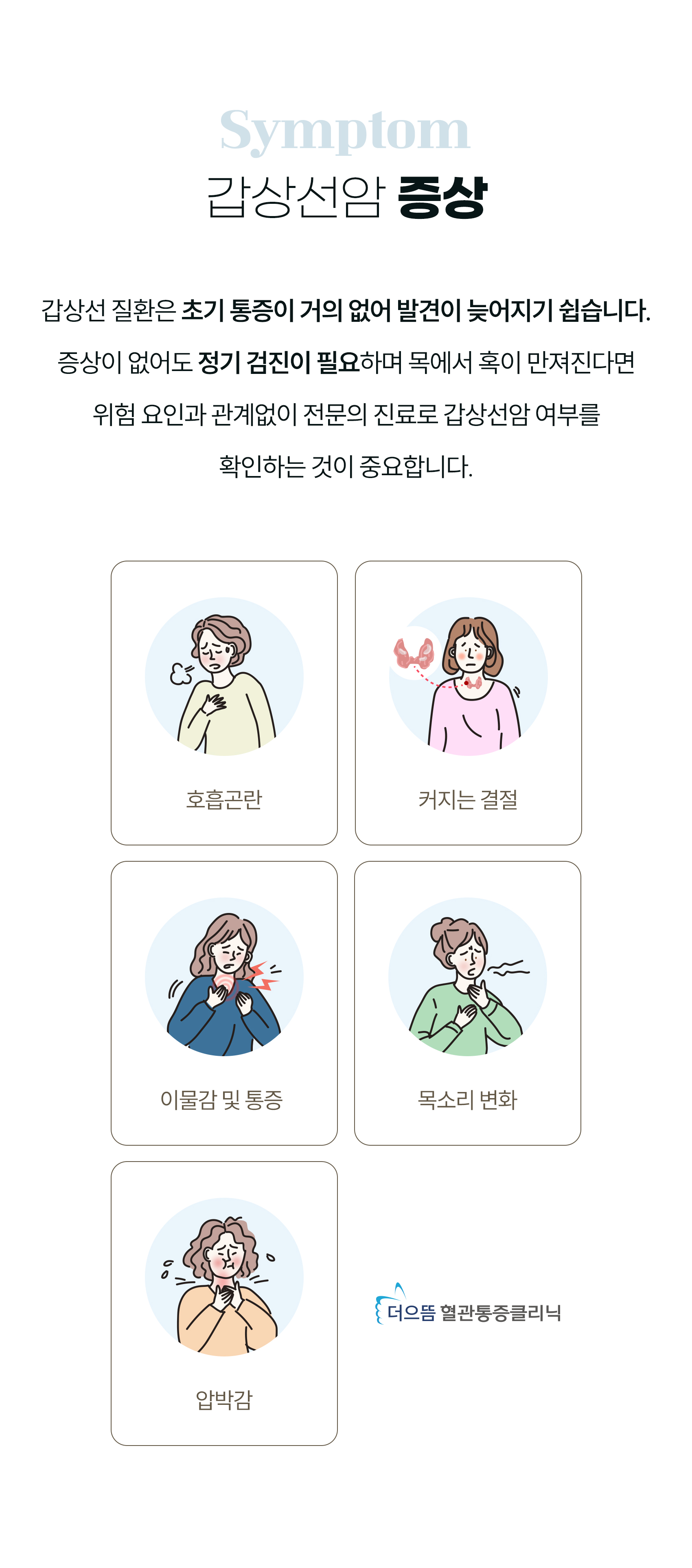 갑상선 질환은 초기 통증이 거의 없어 발견이 늦어지기 쉽습니다.