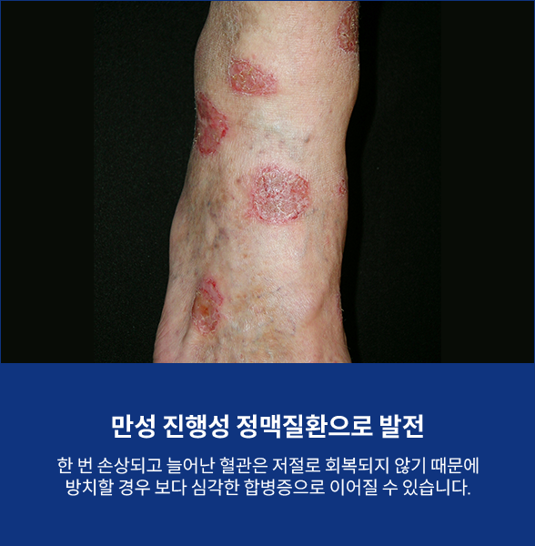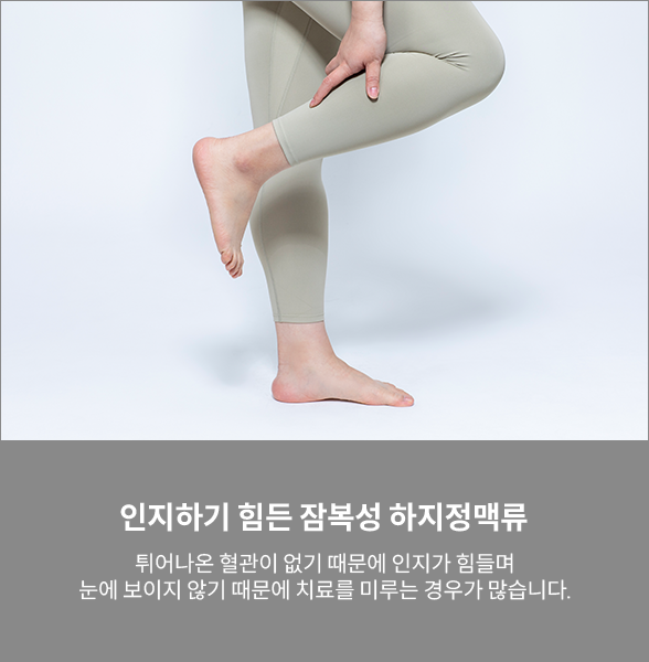 하지정맥류와 달리 겉으로 드러나는 징후 없이 진행되는 하지정맥류로 혈관이 튀어나오지 않아 눈에 보이지 않지만, 피부 밑에서 확장되어 있거나 정맥 역류가 발생하는 질환입니다.