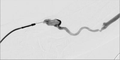 백금코일 및 경화제로 문제되는 혈관을 치료하는