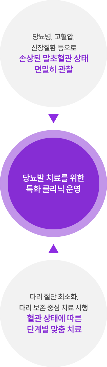 환자의 다리 절단을 최소화하는 다리 보존 중심 치료를 시행합니다.